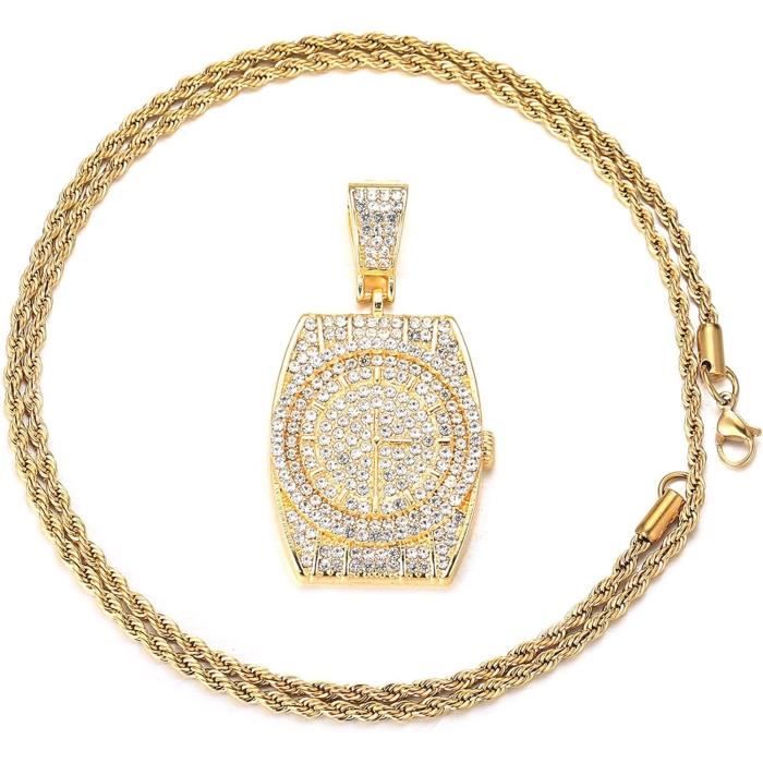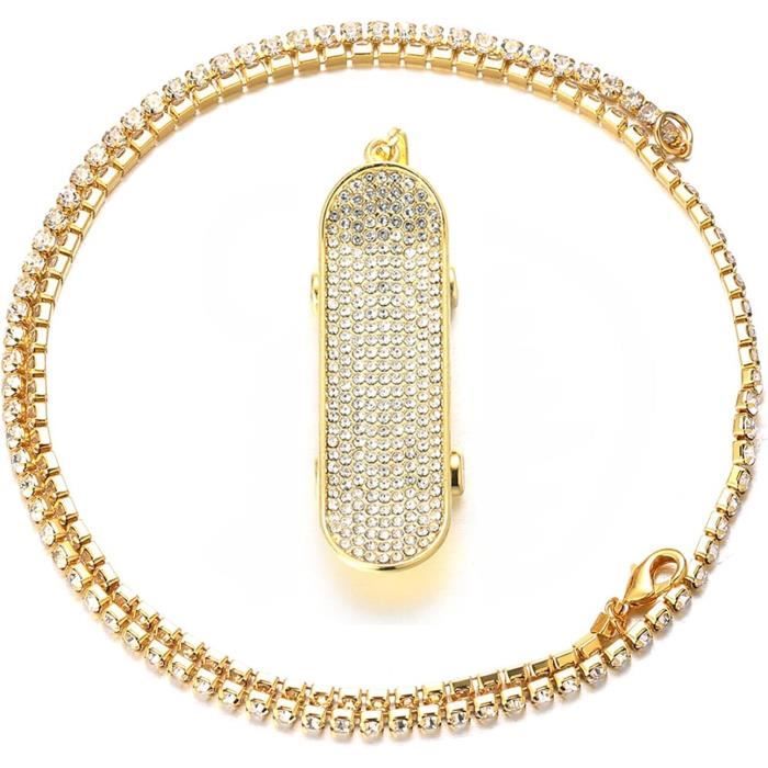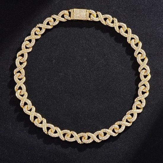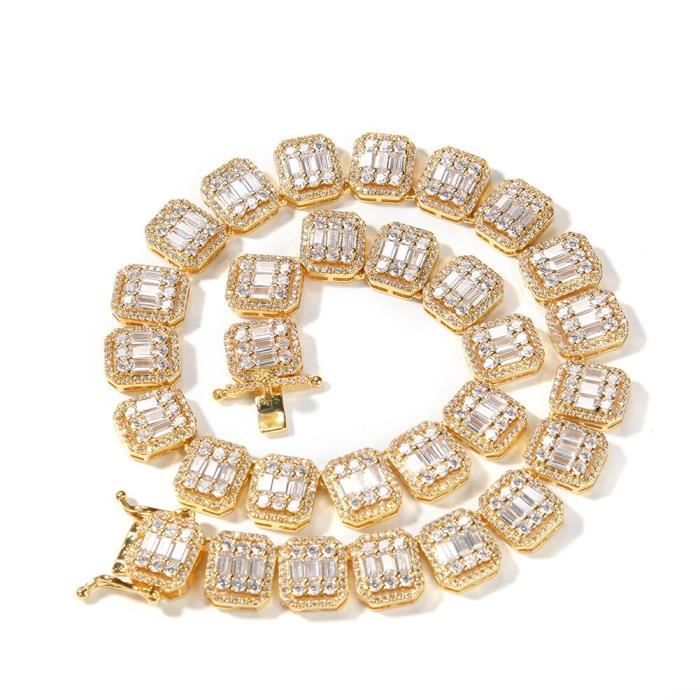 Un collier qui dégage un style hip hop assuré ! Cette chaîne pour homme est plaquée or, ornée de cristaux Cubic Zirconia (CZ) blancs en forme de grappe. Fermoir homard pour une fermeture sécurisée. Longueur réglable entre 7 et 30 pouces. Matière : alliage de bijoutier, pierre principale : CZ. Marque : NewAgeBling. Style : cluster, chaîne à maillons ronds. Parfait pour compléter une tenue décontractée ou pour faire un cadeau branché. Neuf avec étiquettes. Attention, c’est du plaqué – idéal pour un look brillant sans se ruiner !