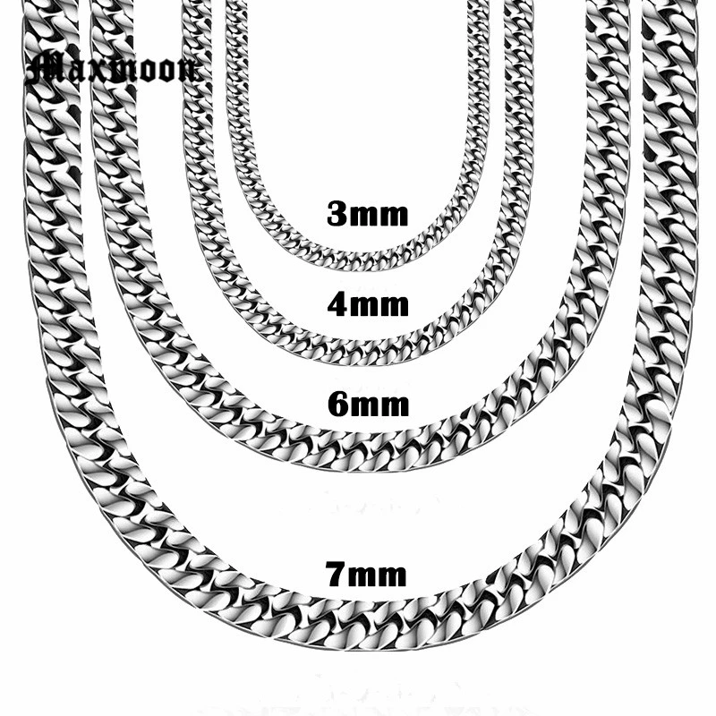 Un basique de la bijouterie qui va avec tout ! Cette chaîne de type \Cuban\ (mailles serrées et plates) est en acier inoxydable 316L, donc hyper résistante à l'oxydation, aux allergies, et elle ne perdra pas sa couleur argentée (le vendeur garantit qu'elle ne se décolore pas). Tu as le choix de l'épaisseur (de 2 mm à 15 mm) et de la longueur (de 40 cm à 90 cm), donc que tu la veuilles fine et discrète ou massive et tape-à-l'œil, c'est possible. Pas de pendentif, juste la chaîne pure. Style unisexe, pour homme ou femme. Elle est neuve, mais vendue sans emballage (donc peut-être en sachet). Parfaite pour un look streetwear, casual, ou pour ajouter une touche métallique à une tenue. Un excellent rapport qualité-prix pour une chaîne solide et intemporelle. Commande plusieurs pour assortir !