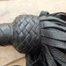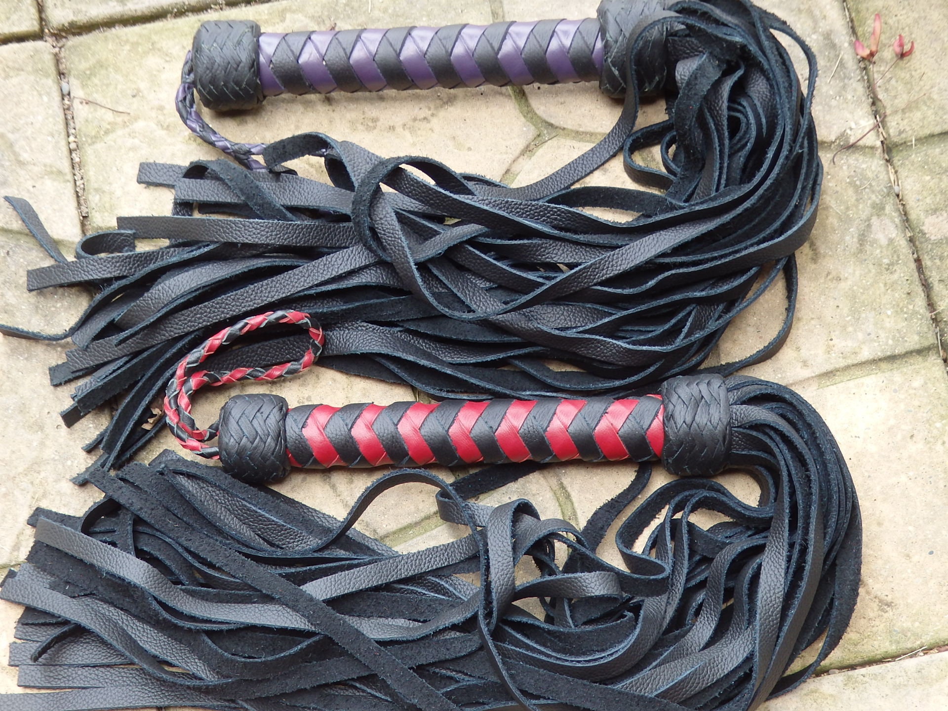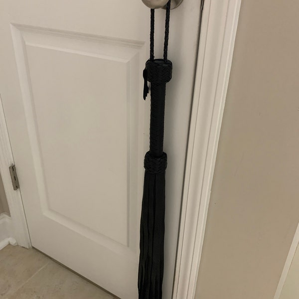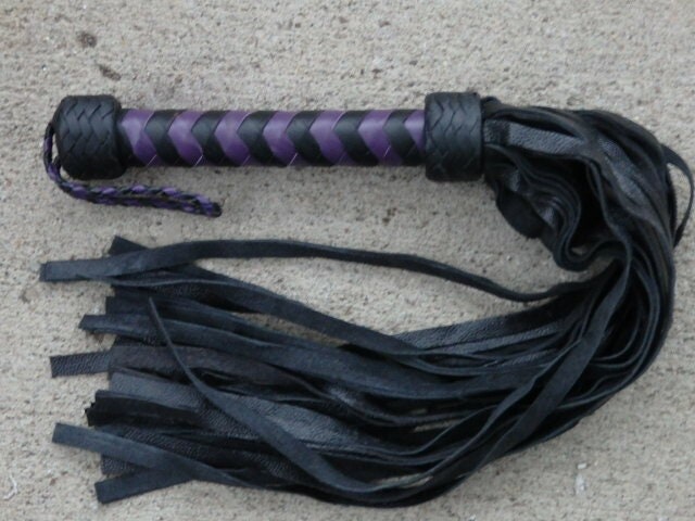 Ce flogger en cuir de qualité premium est impressionnant avec ses 100 lanières noires et violettes. Il est décrit comme 'Super Thuddy', c'est-à-dire qu'il produit un impact sourd plutôt que cinglant. Conçu à l'origine pour l'entraînement équestre (pour stimuler le mouvement sans faire mal), il peut aussi être utilisé dans d'autres contextes. Il est neuf, jamais utilisé, dans son emballage d'origine. Marque générique, mais la fabrication semble soignée. Si tu es cavalier, dresseur, ou simplement à la recherche d'un outil robuste, ce flogger est solide et efficace. Le cuir est souple et durable. Parfait pour le travail en rond de longe ou le training. Consulte l'annonce du vendeur pour plus de détails sur les dimensions. Un article spécialisé mais de bonne facture.