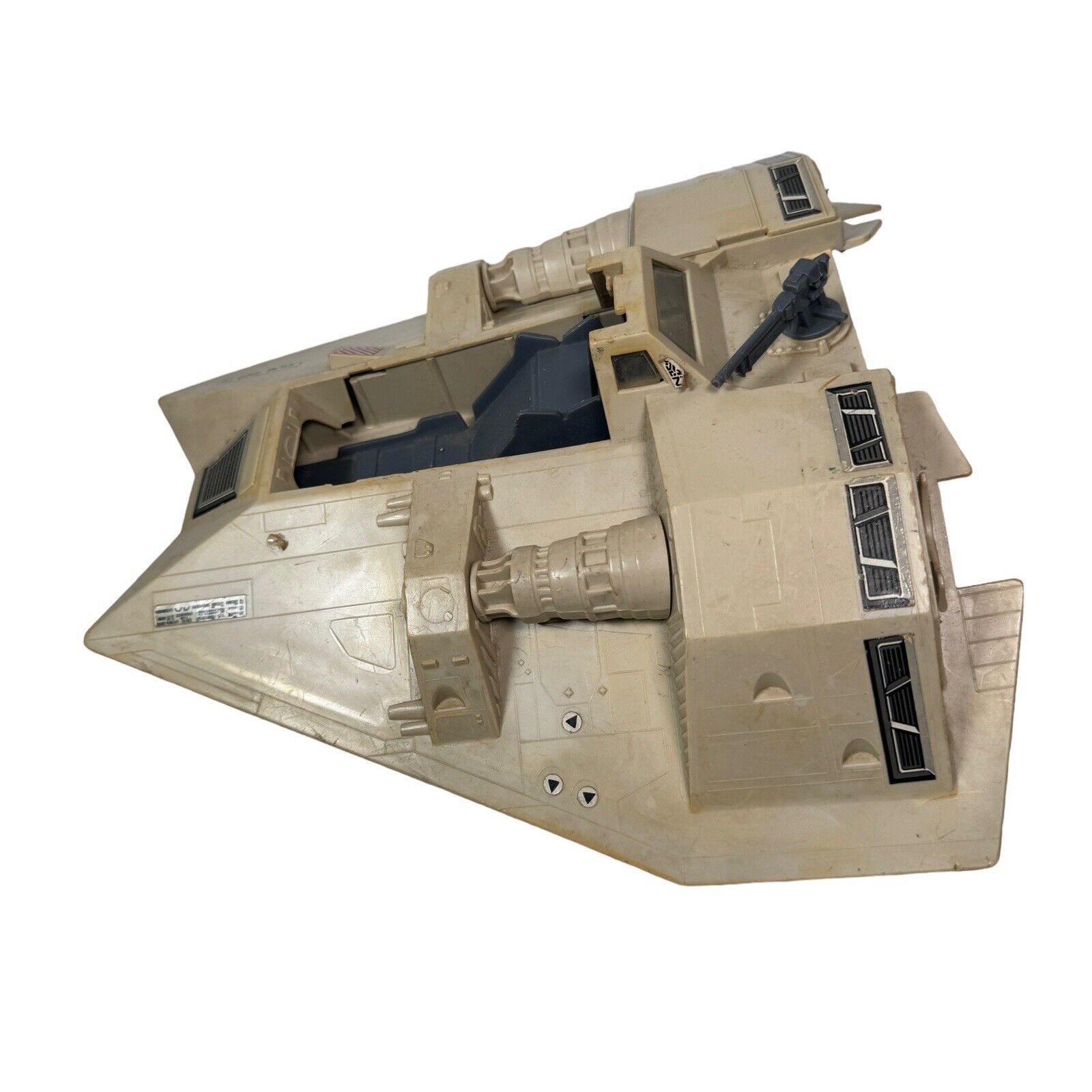 Hey les collectionneurs de Star Wars vintage ! Cette pièce est le propulseur arrière (ou une partie du moteur) du véhicule Snowspeeder de la franchise, issu de la gamme de jouets Kenner de 1980. C'est une pièce d'origine (original), vendue en occasion, donc elle peut présenter des signes d'usure ou de jaunissement. Parfaite si tu as un Snowspeeder incomplet et que tu veux le restaurer, ou si tu collectionnes les accessoires séparément. Vérifie bien les photos de l'annonce pour évaluer l'état exact (cassures, rayures). Un petit morceau d'histoire qui ravivera ton véhicule issu de \L'Empire contre-attaque\. Fais attention à la compatibilité avec ton modèle exact de Snowspeeder Kenner. Une trouvaille rare pour les puristes !