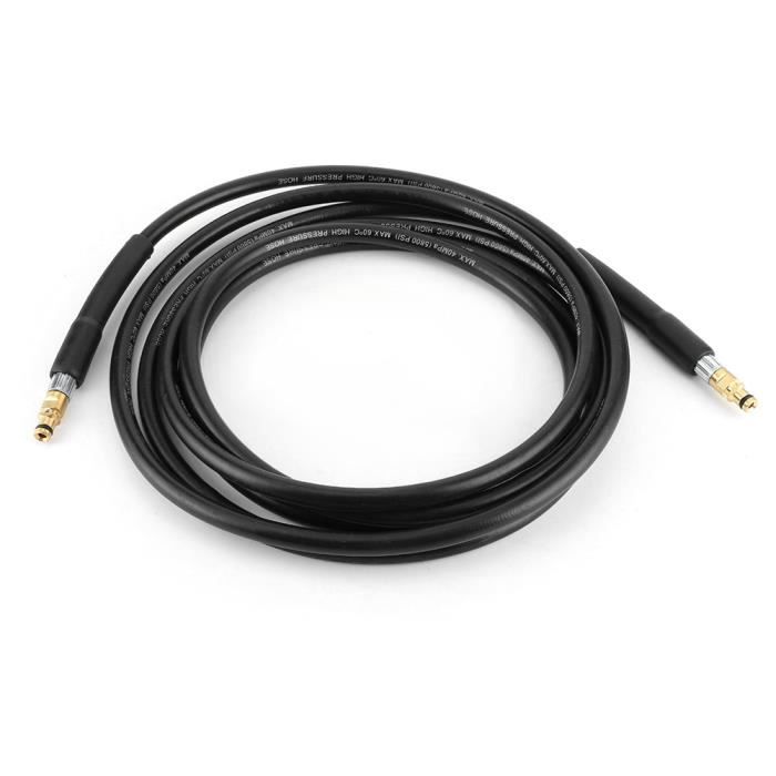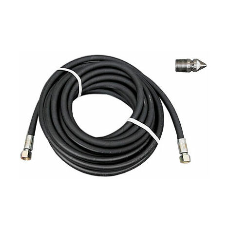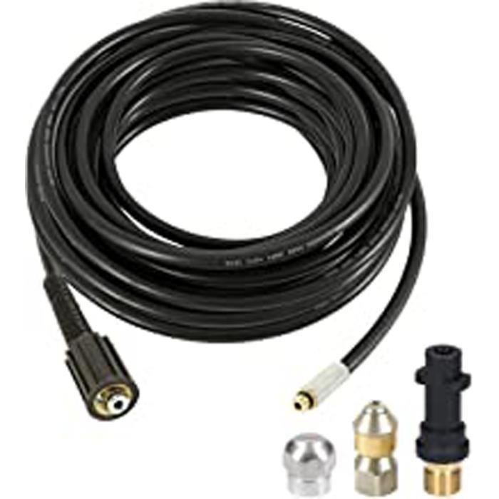 Débouchage de canalisations facilité avec ce tuyau haute pression robuste ! Spécialement conçu pour le nettoyage des canalisations, égouts et gouttières, il se fixe facilement sur les nettoyeurs haute pression Kärcher grâce à son raccord rapide M22 (baïonnette). Choisissez la longueur qui vous convient : 10, 15, 20 ou 30 mètres. Il supporte une pression maxi de 160 bar et une température jusqu'à 60°C, avec un corps en caoutchouc noir résistant. Parfait pour les professionnels du débouchage ou les bricoleurs avertis qui veulent entretenir leurs installations. Livré neuf dans son emballage. Un outil indispensable pour éliminer les bouchons tenaces dans les tuyaux d'évacuation, sans produits chimiques. Pensez à vérifier la compatibilité avec votre modèle de Kärcher !