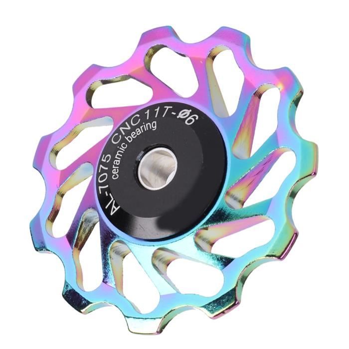 Salut les cyclistes ! Si tu veux améliorer la performance de ton dérailleur, cette poulie en céramique SwishTi est faite pour toi. Avec ses 12 dents et sa construction en titane/aluminium, elle offre un fonctionnement ultra-fluide et une longévité accrue. Elle est compatible avec les groupes Shimano, Sram et Campy sur 9, 10, 11 ou 12 vitesses. Parfaite pour les VTT, route ou gravel. Son design \oversized\ et sa largeur étroite réduisent les frottements et améliorent la précision des changements de vitesse. Fabriquée à Taïwan, elle pèse seulement 15g et est livrée avec une garantie d’un an. Le produit est neuf dans son emballage, prêt à être monté. Idéale pour les passionnés qui cherchent gain de poids et fiabilité. Prêt à rouler plus vite ?