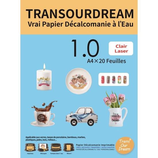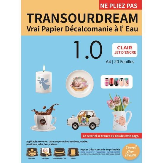 Coucou les créatifs ! Ce pack contient 10 feuilles de papier décalcomanie (ou papier transfert) blanc, spécialement conçu pour les imprimantes à jet d'encre. Parfait pour réaliser tes propres décalques, customiser des textiles légers (comme des T-shirts clairs), créer des stickers, ou transférer des designs sur des surfaces lisses. Le papier est de type 'toboggan' (glissant), ce qui facilite le transfert. Neuf, pas ouvert, prêt à libérer ton imagination. Tu imprimes ton motif inversé, tu découpes, tu appliques avec un fer à repasser ou une presse à chaud, et hop, ton design est transféré ! Idéal pour les petits projets DIY, les cadeaux personnalisés, ou les ateliers créatifs. Attention, suit bien les instructions pour de meilleurs résultats. Livraison en colis plat pour éviter les plis. À toi de jouer !