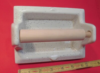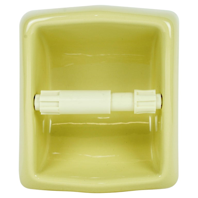 Amateurs de salle de bain rétro et de qualité ancienne ! Ce porte-rouleau de papier toilette est une petite perle. C'est du \New Old Stock\ (NOS) : une pièce neuve de stock ancien, fabriquée par la célèbre maison Fairfacts Co. of New York, réputée pour ses accessoires de salle de bain haut de gamme au siècle dernier. Il n'a donc jamais été installé. Le matériau est de la céramique émaillée, dans une jolie couleur \Oatmeal\ (un beige chaud, proche du taupe), avec une finition brillante. Le style est clairement vintage/antique, avec des lignes épurées mais solides. L'installation est encastrée (recessed) : tu fais un trou de 1 pouce (environ 2.5 cm) de diamètre dans la paroi (cloison sèche ou carrelage), tu l'insères, et la petite lèvre (lip) vient couvrir le bord du trou pour un fini propre, surtout sur du carrelage. C'est ultra discret et élégant. Parfait pour restaurer une salle de bain d'époque, ou pour ajouter une touche de caractère à une déco contemporaine. La qualité de la céramique et de l'émail est bien supérieure à beaucoup de produits modernes en plastique. Une pièce unique, introuvable en magasin aujourd'hui. Livraison avec son emballage d'origine probablement. Un achat coup de cœur pour les puristes de la déco !