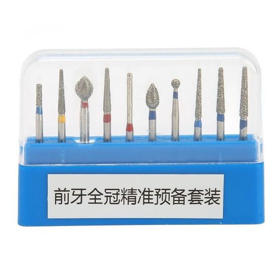 Un set de 12 fraises de polissage (pierres montées) pour usage dentaire professionnel. Ces fraises ont une tête en pierre abrasive verte (oxyde d'aluminium), grain grossier, parfaite pour la finition de l'émail, des composites, des ciments ou de la porcelaine. Type de manchon : FG (Friction Grip), pour les contre-angles à haute vitesse. Vitesse recommandée : entre 6 000 et 10 000 tr/min (max 12 000). Marque AZDENT. Fabriqué en Chine. Conditionné en boîte de 12. Produit neuf sous emballage d'origine. Indispensable en dentisterie restauratrice, en laboratoire, ou en endodontie pour obtenir une surface lisse et esthétique après une intervention. UPC : 635648363349. Un consommable de qualité pour un fini impeccable.