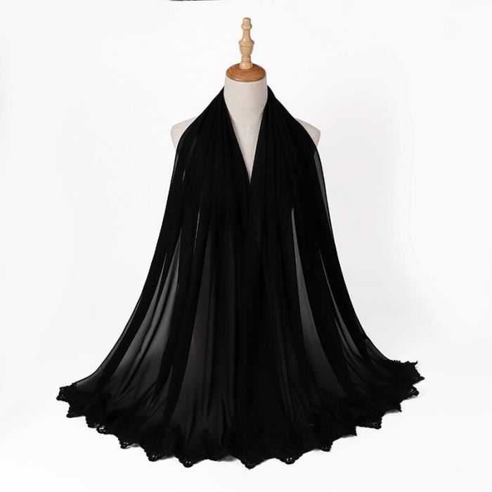 Pour ajouter une touche de légèreté et d'élégance à ta tenue, cette écharpe en mousseline de soie (en réalité en polyester) est sublime. Longue de 155 cm pour 48 cm de large, avec un joli motif floral et des accents crochet.