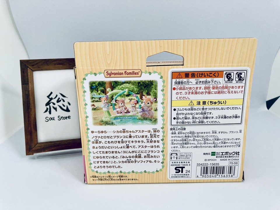 Les enfants (et les collectionneurs !) vont adorer ce set Sylvanian Families « Baby Deer Waterside Friendship Swing ». Référence FS-56, marque Calico Critters. Il est neuf, de fabrication japonaise (2024). Inclus une famille de bébés cerfs et une balançoire au bord de l'eau. Matériaux mélangés, couleurs multiples, très mignon et détaillé. Pour les enfants de 3 ans et plus, mais aussi pour les adultes fans de ces petites figurines. Parfait pour agrandir ton village Sylvanian, ou comme cadeau d'anniversaire. Les figurines sont articulées, les accessoires sont réalistes. Le thème « amitié » est trop chou. La qualité Sylvanian est toujours au rendez-vous. Livraison avec le set complet, dans son emballage d'origine. Attention, ce n'est pas un jouet solide pour les tout-petits, mais pour les enfants soigneux. Fais rêver ton enfant avec ce monde miniature apaisant. Un ajout adorable à toute collection Calico Critters !