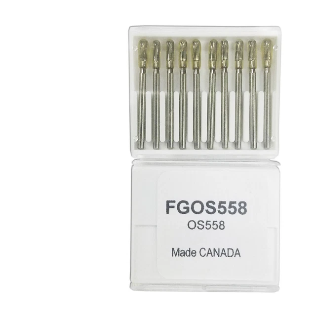 À l’attention des dentistes et prothésistes ! Voici des fraises carbure de qualité, modèle FGOS702, avec une tige chirurgicale FG (poignée à friction). Elles sont neuves, dans leur emballage d’origine, et fabriquées au Canada par Kerr Beavers. La forme est une fraise fissure conique à cannelures croisées, avec 6 lamelles. Dimensions : tête de 1,6 mm, longueur de tête de 4,1 mm, longueur de tige de 19-21 mm. C’est l’ISO 702, parfaite pour les travaux précis en endodontie, orthodontie, ou au labo. Le lot comprend 100 fraises. C’est du matériel professionnel, fiable et précis. Si tu as besoin d’un outil coupant pour préparer les dents, tailler, ou affiner, ces fraises font un excellent travail. Vérifie bien le modèle selon ton usage. Pour toute question sur l’emballage ou l’état, consulte l’annonce. Du bon matériel pour des soins de qualité !