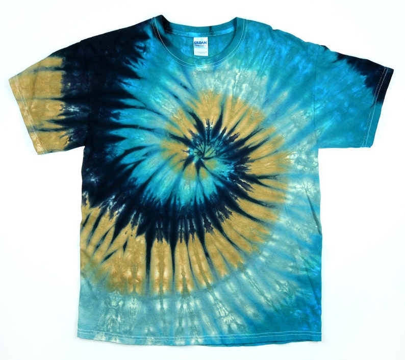 Pour un look décontracté, vintage et coloré, ce t-shirt Tie Dye (teinture nouée) en spirale est top. En 100% coton (5.4 oz), il est doux et confortable. Coupe Regular classique, col rond, manches courtes. Disponible dans plein de combinaisons de couleurs vibrantes et en tailles très larges, du S au 4XL. Marque PC Sportswear. Parfait pour un festival, une soirée détente, ou pour ajouter une touche fun à ta garde-robe basique. Chaque t-shirt a un motif unique grâce à la technique Tie Dye. Neuf sans étiquettes. Si tu aimes le style bohème, psychédélique ou tout simplement les vêtements originaux, celui-ci est fait pour toi. Lavage machine en cycle doux pour préserver les couleurs. Un basique qui ne passe pas inaperçu !