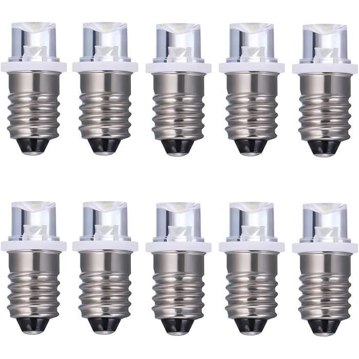 Lot économique de 10 petites ampoules LED avec culot E10. Fonctionnent sous 12V ou 6V (AC/DC). Couleurs disponibles : blanc, bleu, rouge, vert, blanc chaud, jaune, rose. Parfaites pour des projets de modélisme, des décorations, des guirlandes DIY, des tableaux de bord, des jouets... Chaque LED est de type SMD, petite et brillante. Neuf, vendues en vrac (voir photo). Marque générique. Un lot polyvalent pour bricoler, réparer ou créer. Attention, couleurs envoyées aléatoirement ou selon stock. Envoi en petite enveloppe.