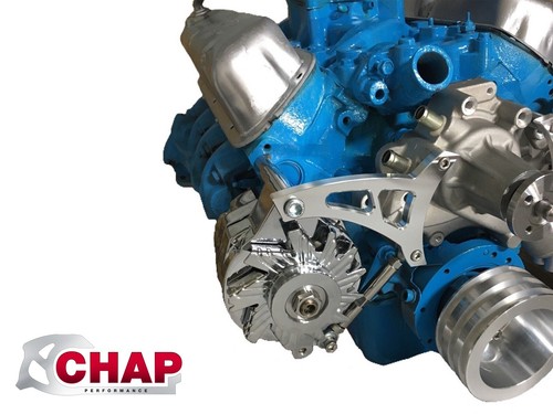 Pour les fans de tuning Ford ! Voici un support d'alternateur en aluminium billetté, poli, conçu pour le moteur 351W Windsor 5.8L. C'est un modèle mid mount (montage central) pour courroie V. La pièce est d'occasion, provenant d'un stock \scratch and dent\ - elle peut avoir de petites imperfections esthétiques (rayures, traces d'usinage) mais est parfaitement fonctionnelle. Marque CVF Racing, référence SD-351W-ALTBRKT-D, compatible avec le kit March 30395. Fabriqué aux États-Unis, avec une garantie à vie. Parfait pour un projet de restauration, de customisation, ou pour remplacer un support fatigué. Les fixations sont incluses. Si tu cherches une pièce solide et légère pour ton bloc Windsor, c'est une bonne affaire !