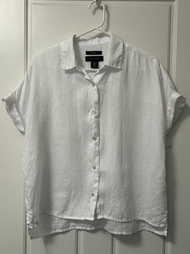 Une belle blouse pour l'été ! Ce haut pour femme de la marque Tahari est en 100% lin, la matière idéale pour rester fraîche quand il fait chaud. Couleur orange solaire, sans manches, avec un col rond. Le dos est boutonné, un détail chic et pratique pour l'enfilage. Taille L (type Regular). Elle est NEUVE, avec son étiquette d'origine encore attachée (NWT). Convient pour une occasion business chic, un look casual élégant, une soirée, un mariage ou des vacances. Entretien : lavage à la main recommandé pour préserver le lin. Style tunique, léger et fluide. Accentue le teint et va avec un jean blanc, une jupe longue ou un pantalon tailleur. Une pièce intemporelle et de qualité pour ta garde-robe d'été. Fonce si tu aimes les couleurs vives et les matières naturelles !
