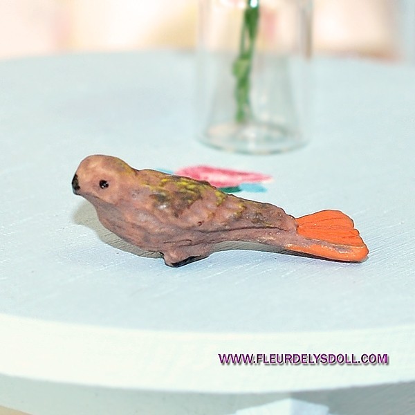 Pour les amateurs de miniatures, de maisons de poupées ou tout simplement pour ajouter une touche délicate à une étagère ! Ceci est un petit oiseau en porcelaine, à l'échelle 1/12ème (c'est l'échelle standard des maisons de poupées dites \adulte\).\n\nL'article est vendu comme étant en état \neuf\ par le vendeur, bien que catégorisé \occasion\. Il est sans marque spécifique. Sa petite taille et sa finition en font un accessoire parfait pour agrémenter une scène miniature (sur une branche dans un jardin de poupée, sur une cheminée...), ou pour être exposé seul dans une vitrine de collection.\n\nLa porcelaine donne un aspect fin et réaliste. C'est un objet individuel (référence *CL5). Il peut aussi servir de décoration dans une véranda, un salon ou une salle à manger, pour les amoureux des petits détails poétiques. Un petit trésor pour les passionnés de miniatures !
