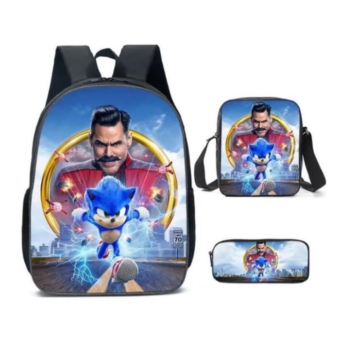 Votre enfant est fan de Sonic ? Ce sac à dos Sega officiel va lui faire super plaisir ! C'est un set complet avec un sac à dos principal et un sac à lunch assorti. Dimensions du sac à dos : 30 cm de haut, 24 cm de large, 10 cm de profondeur. En polyester, couleur rouge et bleue, avec de multiples poches et une poche à bouteille. Bretelles ajustables et poignées doubles. Doublure en tissu. Parfait pour l'école, les voyages, ou les activités quotidiennes. Thème Sonic The Hedgehog, avec les personnages de la série. Modèle 11297-3209, fabriqué en Chine. Livré neuf avec étiquettes. Un sac solide, pratique, et surtout trop cool pour les petits (et grands) fans ! Pensez à vérifier la taille par rapport à l'âge de l'enfant. Un cadeau idéal pour un anniversaire ou Noël.