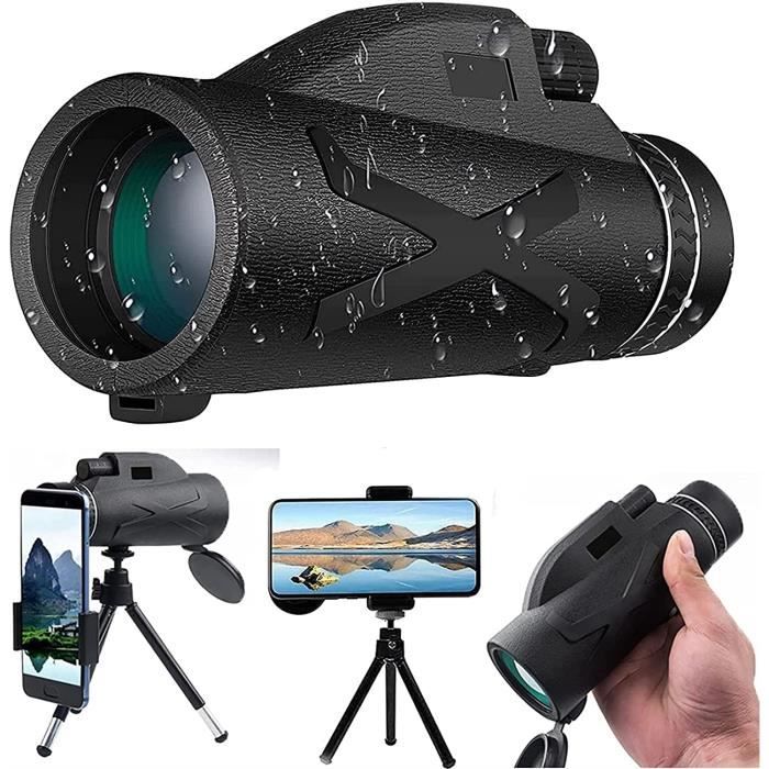 Pour observer la nature, les oiseaux, les étoiles, ou même les événements sportifs de loin, ce monoculaire 80x100 est un super équipement. Il offre un grossissement de 80 fois et un objectif de 100 mm de diamètre, donc une image lumineuse et nette même en faible lumière. Il est livré avec un trépied pour une stabilité parfaite, et un support pour fixer votre smartphone et prendre des photos/vidéos. Il est étanche, antichoc, avec des lentilles multi-traitées (FMC) et un prisme BAK-4 pour une qualité optique supérieure. Poids : 405g. Garantie 3 ans. Idéal pour la randonnée, la chasse, l'observation maritime, ou les concerts. Stocké en Allemagne, livraison rapide. Un produit polyvalent et bien fini pour les amateurs de plein air.
