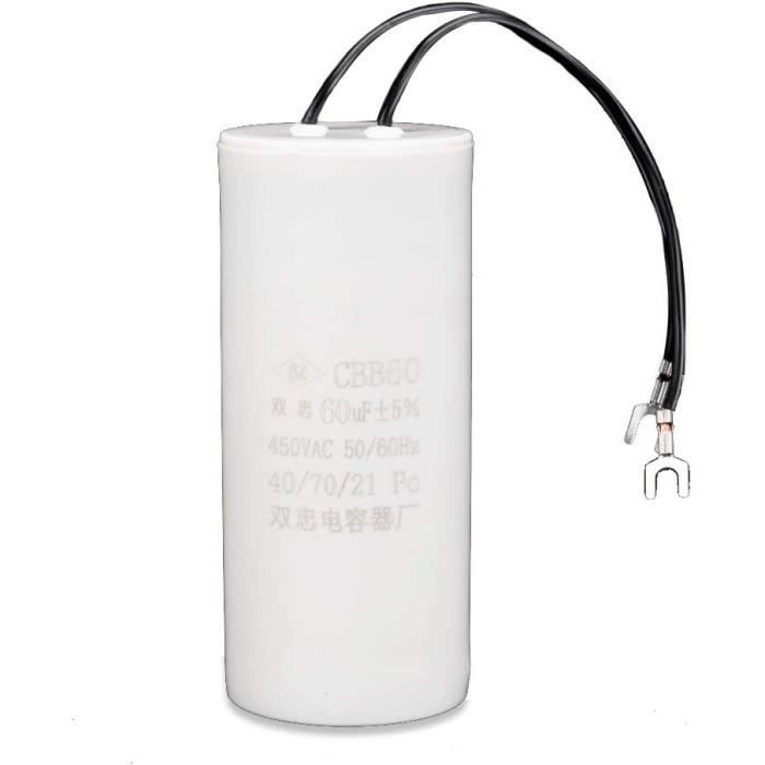 Ce condensateur CBB60 de 50µF et 450V AC est un incontournable pour la réparation ou l’entretien de moteurs électriques, de pompes à eau, de climatiseurs ou de machines outils. Sa tolérance de ±5% assure une bonne stabilité, et ses connexions à languettes de 6 mm sont compatibles avec de nombreuses installations. Dimensions : corps de 106 mm de long, 49 mm de diamètre, 132 mm avec les languettes et l’axe. Il est livré neuf dans sa boîte d’origine, avec l’EAN 5053197010883. Parfait pour les bricoleurs avertis, les techniciens en électromécanique ou les réparateurs d’appareils ménagers. Fonctionne en 50/60 Hz, donc adaptable à la plupart des réseaux. Si votre ancien condensateur a lâché, celui-ci le remplacera sans souci. Un produit fiable, bien fabriqué, et essentiel pour redémarrer un moteur capricieux. Pensez à couper le courant avant toute manipulation !