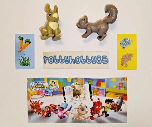 - État : Tout est NEUF, jamais ouvert ou sorti de son emballage d'origine (œufs Kinder peut-être ouverts pour extraire les figurines, mais celles-ci sont intactes)