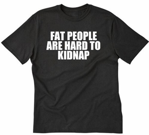 Un t-shirt qui fait sourire et revendique la fierté ! Avec le slogan humoristique \Fat People Are Hard To Kidnap\ (Les personnes en surpoids sont difficiles à kidnapper), ce tee-shirt est parfait pour ceux qui aiment l'humour décalé et la positivité corporelle. Il est disponible dans une large gamme de tailles, du S au 5XL, pour s'adapter à toutes les morphologies. Vous avez aussi le choix entre plusieurs couleurs classiques : Noir, Rouge, Bleu marine, Blanc et Gris. Le tissu est en 100% coton pré-rétréci, pour un confort optimal et une coupe qui reste après lavage. Manches courtes, coupe Regular. Il est neuf avec ses étiquettes. Marque : Multiple Brands. Un super cadeau pour un ami(e) ayant le sens de l'humour, ou pour vous-même si vous aimez les messages qui sortent de l'ordinaire. Portez-le avec le sourire !