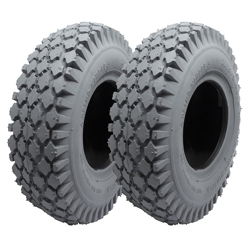 Hey, si tu as besoin de pneus neufs pour ton fauteuil roulant manuel, ton scooter électrique de mobilité, ou même une petite remorque, ce lot de 2 pneus est idéal. Les dimensions sont 4.10/3.50-5 (c'est un format courant). Ils sont gris, en pneu pneumatique classique, avec une capacité de charge max de 100 kg par pneu. Le pack inclut aussi 2 chambres à air avec valve à 90° (pratique pour le gonflage). Marque Rolko, fabriqués en Chine, mais neufs et prêts à monter. Parfaits pour remplacer des pneus usés, crevés, ou pour améliorer le confort de roulement par rapport aux pneus pleins. Assure-toi que la taille correspond bien à tes jantes existantes. L'installation demande un peu d'huile de coude et des démonte-pneus, mais c'est faisable. Roule en toute tranquillité !
