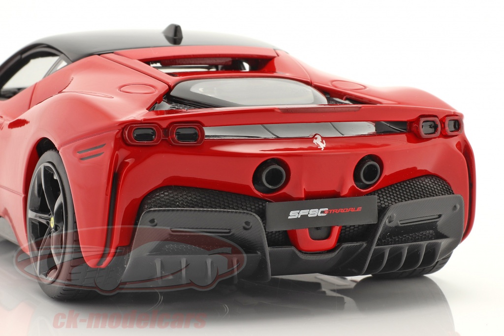 Fan de Ferrari ? Ce modèle réduit de la SF90 Stradale Hybride 2019 va te plaire ! À l'échelle 1:18 (environ 24 cm de long), il est en métal (die-cast) et peint en rouge Ferrari brillant. Les portes et le capot s'ouvrent, ce qui ajoute au réalisme. La marque Bburago est reconnue pour ses bonnes reproductions. C'est une pièce neuve, parfaite pour compléter une collection, décorer une étagère ou faire un cadeau à un passionné d'automobile. Elle est livrée avec son emballage d'origine (OVP). Une belle pièce à avoir !