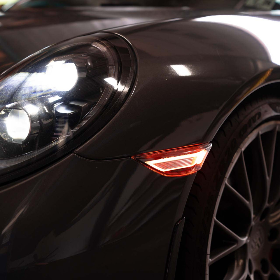 Donnez un look plus agressif et moderne à votre Porsche Boxster 981 (modèles de 2012 à 2016) ! Cette paire de répétiteurs de clignotants est équipée de LED dynamiques (séquence d'allumage) et présente un verre fumé, pour un style sportif et discret. Ils sont neufs, dans leur emballage d'origine, prêts à être installés à la place des clignotants d'origine orange souvent un peu datés. Marque TUNING TEC. Le code EAN est 3665617652836. L'installation est généralement simple pour un bricoleur, mais peut nécessiter un peu de démontage du pare-chocs ou des passages de roue. Ils améliorent la visibilité grâce aux LED et personnalisent vraiment la silhouette de votre Boxster. Alors, envie de moderniser l'avant de votre voiture pour quelques dizaines d'euros ? Ces clignotants sont une modification très populaire et efficace. Roulez avec style et sécurité !