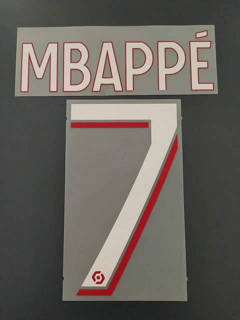 Pour personnaliser votre maillot PSG domicile de la saison 2018/2019 comme un pro ! Ce flocage officiel reproduit le numéro 7 et le nom MABPPÉ (attention, orthographe exacte du flocage original) dans le style Ligue 1 de l'époque. Dimensions conformes : numéros de 20 cm, lettres de 7,5 cm.