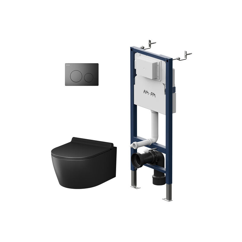 Coucou ! Ce WC suspendu Belvit est un kit complet qui inclut tout : la cuvette sans bord (hygiénique), le réservoir encastrable, la plaque de déclenchement, l’abattant Softclose, et la fonction taharet/bidet intégrée (jet d’eau pour l’hygiène intime). Couleur noir mat, design moderne et épuré. Dimensions : hauteur 28 cm, largeur 36 cm, longueur 52 cm, forme demi-ronde. Fabriqué en Belgique, qualité européenne. Référence Belvit AL6612KomplettSet, EAN 5404029121398. Parfait pour une salle de bain contemporaine, ou pour répondre à des besoins spécifiques d’hygiène. Installation nécessite un montage sur une structure encastrée (généralement fournie ? à vérifier). Livraison des pièces soignées. Si tu veux gagner de la place au sol et avoir un WC facile à nettoyer, c’est un excellent choix. Pense à prévoir la pose par un plombier si tu n’es pas bricoleur.
