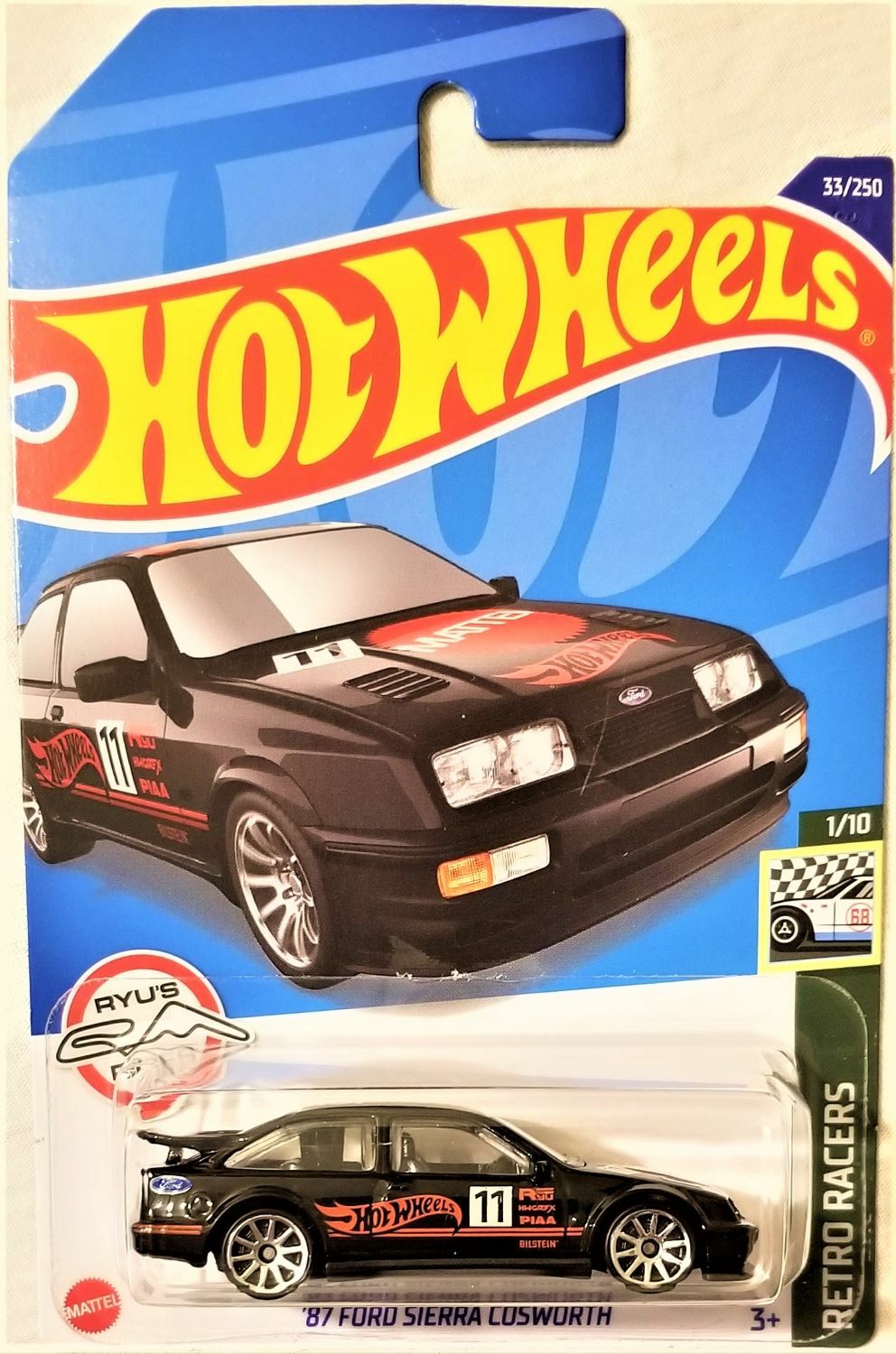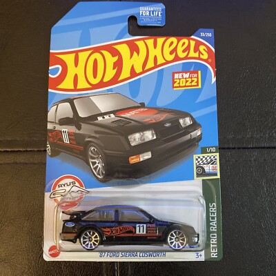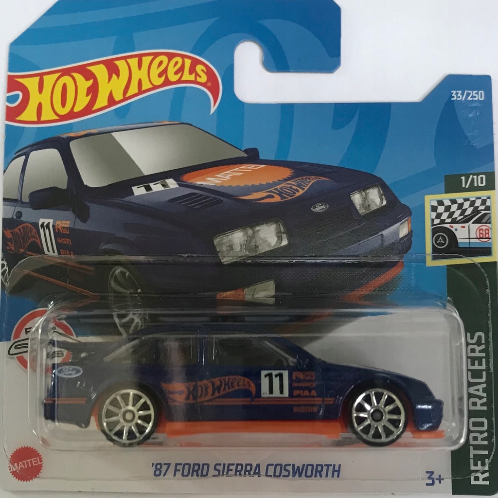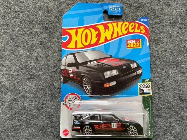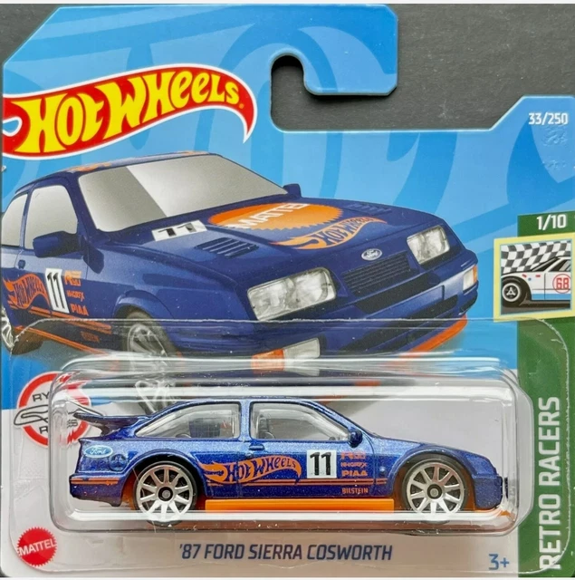 Hey les collectionneurs et fans de voitures de sport ! Voici une superbe miniature Hot Wheels de la mythique Ford Sierra Cosworth, version 1987. Elle est toute en noir, avec un look rétro et sportif qui claque. C'est une édition spéciale de la série 'Retro Racers' sortie en 2022. À l'échelle 1:64, elle est fabriquée en Malaisie avec les détails précis qu'on adore chez Hot Wheels. Référence HCT21-M524, EAN 0074299057854. Elle est neuve et vendue avec sa boîte d'origine (OVP), parfaite pour la garder en état ou pour l'exposer. Que tu sois un passionné de Ford, de rallye ou simplement un amateur de belles miniatures, cette Sierra Cosworth est un must-have dans ta vitrine. Un petit bijou à offrir ou à s'offrir sans hésiter !