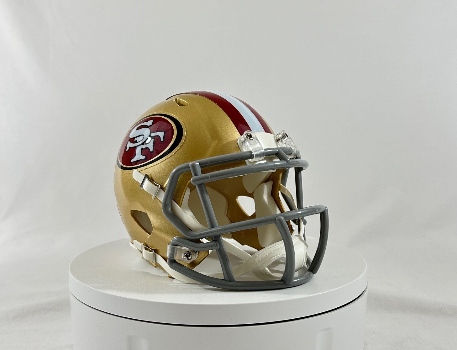 Un superbe casque miniature des San Francisco 49ers, de la marque Riddell, le fabricant officiel des équipements NFL. Ce modèle est une réplique authentique et détaillée, parfaite pour les fans de football américain ou les collectionneurs. Il est vendu neuf, probablement dans son emballage d'origine. Les miniatures Riddell sont très prisées pour leur réalisme et leur finition. Idéal pour décorer un bureau, une étagère, ou pour offrir à un supporter des 49ers. Le produit ne semble pas avoir de code UPC, mais c'est bien un article officiel ou sous licence. Dimensions et échelle non précisées, mais il s'agit d'un modèle réduit, donc parfait pour une présentation. Une pièce collector qui plaira à coup sûr ! Vérifiez les photos de l'annonce pour plus de détails sur le modèle exact.