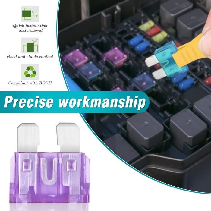 Assurez la protection électrique de votre véhicule avec ce lot de 10 fusibles plats ATO de 35 ampères ! Ils sont neufs, intacts, et conditionnés dans leur emballage d'origine. De type standard à enfichable, ces fusibles de couleur bleu-vert sont fabriqués par Auprotec, une marque fiable dans le domaine de l'équipement automobile. Leur numéro de fabricant est 20070200.32, et ils sont conçus pour remplacer les fusibles défectueux dans la boîte à fusibles de votre voiture. Avec une intensité nominale de 35A, ils conviennent pour des circuits électriques courants. Un essentiel pour tout bricoleur automobile, garantissant que vos systèmes électriques (éclairage, climatisation, etc.) sont protégés contre les surcharges. Gardez-en quelques-uns dans votre garage ou votre voiture pour être toujours prêt en cas de besoin. Simple, efficace et économique !