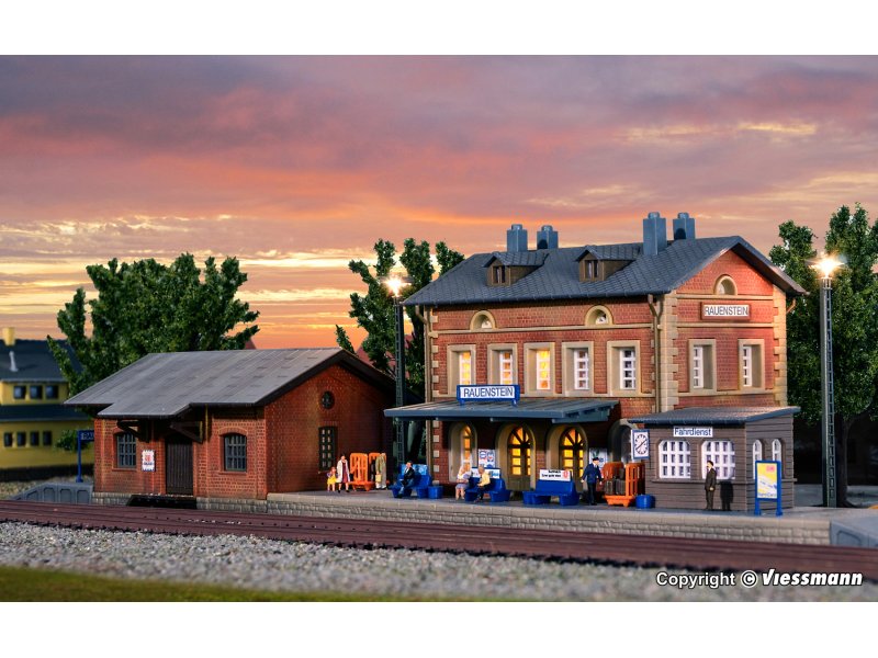 Les amateurs de modélisme ferroviaire, voici un beau kit Kibri : la gare de Rauenstein en briques, à l’échelle N (1/160). Le set comprend le bâtiment principal ainsi qu’un dépôt de marchandises, pour créer une scène réaliste et détaillée. Tout est neuf, jamais monté, dans sa boîte d’origine. Parfait pour agrémenter votre réseau, que vous soyez débutant ou confirmé. Les couleurs et textures rendent bien une ambiance vintage. Si vous cherchez un bâtiment typique et chargé de caractère pour compléter votre paysage, cette gare est un excellent choix.