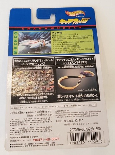 Collectionneur de Hot Wheels ou fan de Speed Racer ? Cette miniature Charawheels 'Mach Go Go Go' de 2001 est une pièce sympa. Échelle 1:64, en diecast (métal moulé), couleur blanche. Elle est en bon état général, avec sa boîte d'origine NON OUVERTE. Fabriquée au Japon. Parfaite pour compléter une collection thématique Speed Racer ou Hot Wheels vintage (années 2000). Attention, c'est de l'occasion ('Good Condition'), donc la boîte peut présenter des traces du temps. Voir photos pour plus de détails. Une belle trouvaille rétro !