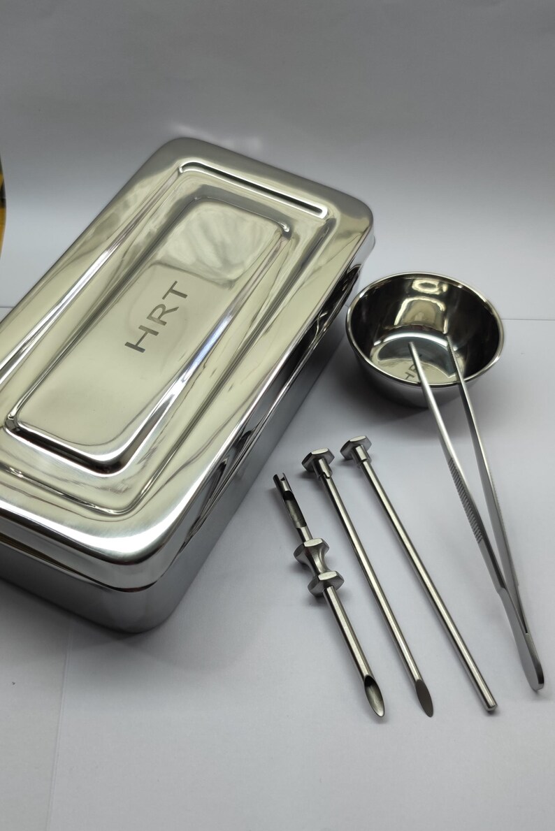 Ce kit médical comprend des trocars de 3,5 mm et 4,5 mm, spécialement conçus pour l'insertion sous-cutanée de granulés dans le cadre d'une thérapie de remplacement hormonal (HRT). Marque Promed Tools, fabriqué au Pakistan. Utilisé en gynécologie, chirurgie générale ou orthopédie pour des procédures précises et stériles. Vendus neufs dans leur emballage d'origine. Destiné aux professionnels de santé formés, pas à l'usage domestique. Les trocars sont en acier inoxydable, réutilisables après stérilisation appropriée. Un outil essentiel pour les cliniques ou cabinets spécialisés en HRT. Vérifiez les protocoles de votre établissement avant utilisation. Livraison discrète et sécurisée.