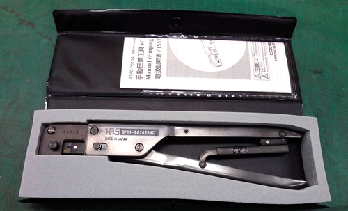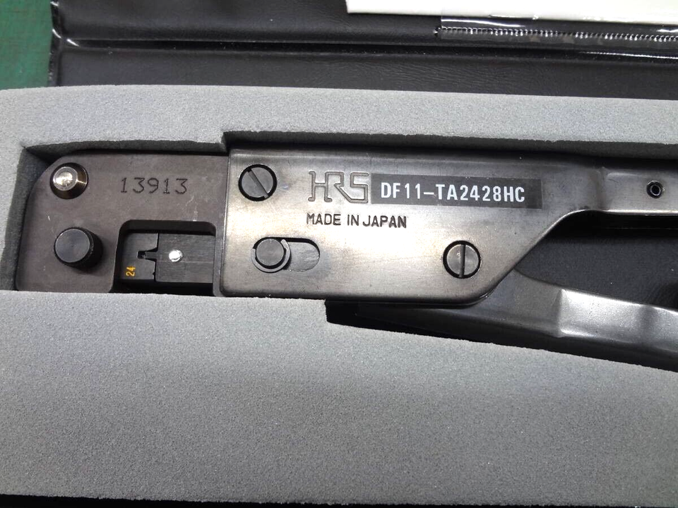 Voici un outil de sertissage manuel de la marque HRS (HIROSE), modèle DF11-TA2428HC, conçu pour les connecteurs de la série DF11 (tailles de câble 24-28 AWG). Il est vendu d'occasion, mais le vendeur indique qu'il a été vérifié et est en bon état de fonctionnement. L'état esthétique est 'Very Good', il est fourni avec sa boîte de rangement (un peu tachée et déchirée) et ses accessoires (voir photos). Parfait pour les techniciens en électronique, les réparateurs de câbles, les amateurs de modélisme (drones, RC) ou les bricoleurs qui travaillent avec ces connecteurs Hirose fréquents. Un outil précis et robuste qui permet de réaliser des sertissages propres et fiables. Une bonne affaire pour éviter le prix du neuf, tout en ayant un outil professionnel testé et fonctionnel !