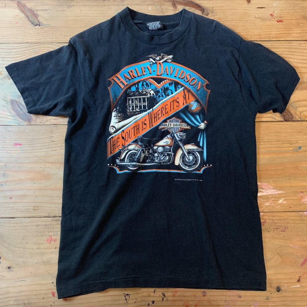 Salut les fans de moto ! Voici un T-shirt Harley-Davidson officiel, avec son célèbre logo bien visible. Il est en coton doux, coupé pour les hommes (taille normale), avec des manches courtes et un col rond. La couleur est noire, un classique intempérable. Il est personnel (le logo est là pour le prouver !). C’est un vrai produit Harley-Davidson, fabriqué au Cambodge. Tu peux le porter en toute saison, seul ou sous un blouson. Il se lave en machine, super pratique. Il est neuf, jamais porté, avec ses étiquettes. Parfait pour afficher ta passion sur la route ou au quotidien. Le poids est d'environ 400g, ça reste léger et confortable. Un must-have dans la garde-robe d'un rider !