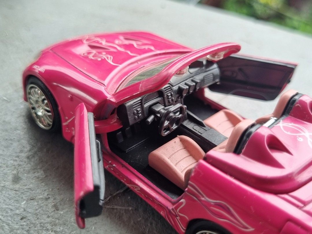 Salut les collectionneurs de Fast & Furious ! Une voiture miniature Jada Toys toute neuve, encore dans sa boîte scellée. Échelle 1:32, modèle Honda S2000 de Suki (du 2e film), en rose vif. En métal moulé sous pression (diecast), avec des détails soignés, des pneus en caoutchouc et des roues libres. Édition limitée, réf. 97610, année 2023. Parfaite pour exposer sur une étagère, compléter ta collection Fast & Furious, ou offrir à un fan de la saga. La boîte peut différer légèrement de la photo. Si tu aimes les voitures de film iconiques et les modèles réduits de qualité, celle-ci est un must. Prépare-toi à ajouter un peu de vitesse rose à ta vitrine !