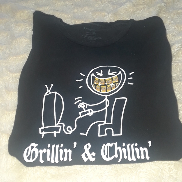 Un t-shirt qui parle à tous les amateurs de grillades et de détente ! Le design \Grillin' and Chillin'\ est drôle, parfait pour les apéros d'été, les fêtes de famille ou les cadeaux de Father's Day. Le tee-shirt est en 100% coton, confortable et respirant. Col rond, manches courtes, coupe régulière. Tailles disponibles : du XS au 3XL pour les adultes, et aussi en tailles enfant (12M à 4T). Il est neuf, avec étiquettes. Thème : cuisine, nourriture, humour. Lavable en machine, facile d'entretien. Fabriqué aux États-Unis. Marque non spécifiée (générique), mais le coton est agréable. Un vêtement décontracté pour toutes les saisons, qui exprime votre amour pour le barbecue et les bons moments entre amis. Parfait pour un look casual et fun !
