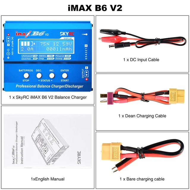 Hey les pilotes de drones, d'avions RC et les passionnés de modélisme ! Un bon chargeur, c'est la base. Le SKYRC IMAX B6 V2 est un classique indétrônable. Il est NEUF, sous blister. C'est un chargeur-équilibreur intelligent d'une puissance de 60W et un courant max de 6A. Il gère presque tout : batteries LiPo, LiHV, LiFe, NiMH, NiCd, et même Pb (plomb). Donc, que tu fasses du drone FPV, de la voiture radiocommandée, ou que tu doives entretenir une batterie de secours, il fait l'affaire. Il a un écran LCD, des menus en anglais, et permet de charger, décharger, équilibrer, stocker... bref, toutes les fonctions pro pour bien traiter tes batteries et les faire durer. Modèle V2 (version 2), couleur bleue. Fabriqué en Chine par SkyRC, une marque bien connue dans le domaine. Branchement secteur. Attention, pas de câbles d'équilibre inclus de base, il faut les avoir en fonction de tes connecteurs (XT60, JST, etc.). Un investissement essentiel pour tout modéliste sérieux qui veut charger en sécurité et avec précision. Prends soin de tes batteries, elles te le rendront !