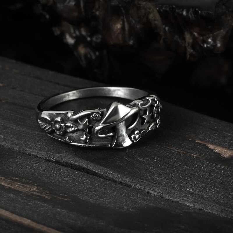 Métal : acier inoxydable, donc résistant à la corrosion et aux chocs. Pas de marque générique, mais finition soignée. Couleur argenté précis, style biker affirmé. Type : anneau, à porter seul ou avec d’autres bagues.