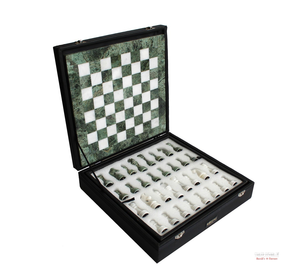 Un superbe jeu d'échecs pour décorer ton salon ou offrir à un passionné ! L'échiquier en marbre blanc et onyx vert mesure 40cm de côté, avec des pièces sculptées dans le même matériau. Fabriqué en Italie, il a un look luxueux et intemporel. Parfait pour 2 joueurs, il apporte une touche d'élégance à ta table basse. Neuf, jamais utilisé. La marque est CBAM, qualité artisanale. Les pièces sont lourdes et agréables en main. Idéal pour les parties du dimanche ou comme objet de décoration. Un investissement pour les amateurs de jeux de stratégie ou de décoration raffinée. Livré probablement sans boîte de rangement. Un jeu qui impressionne à coup sûr !
