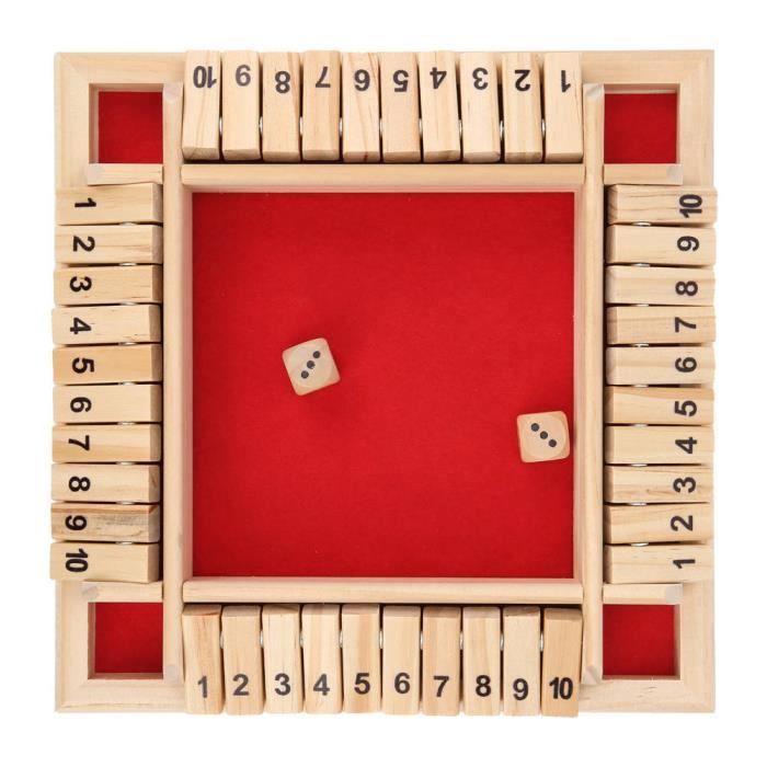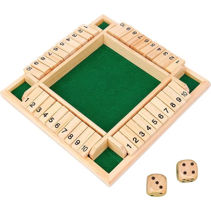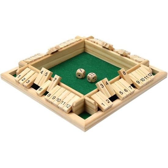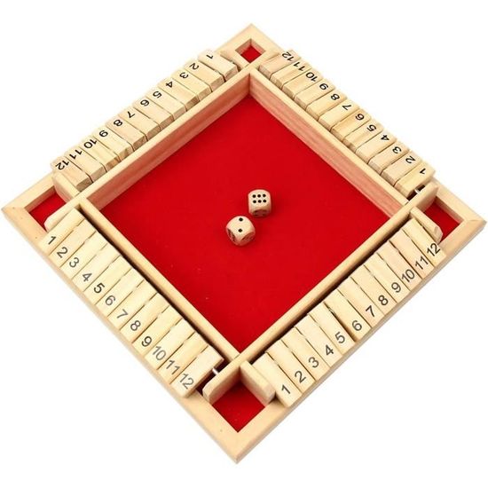 Cherchez un jeu simple, addictif et qui plaît à tous ? 'Shut The Box' (ou 'Fermez la Boîte') est un classique intemporel. Ce jeu en bois se joue de 1 à 4 joueurs. Le principe : lancer les dés et rabattre des clapets numérotés en fonction du score, le but étant de tous les fermer. C'est un mélange de chance (les dés) et de petite stratégie. Parfait pour les soirées entre amis, au pub, en famille, ou même en solo pour se défier. Le plateau en bois lui donne un côté authentique et chaleureux. Le produit est neuf, sans marque spécifique. Un excellent moyen de passer un bon moment sans écran, qui ne prend pas de place et se comprend en 30 secondes. Idéal comme petit cadeau ou pour agrémenter votre collection de jeux de société. Lancez les dés et tentez de 'shut the box' !