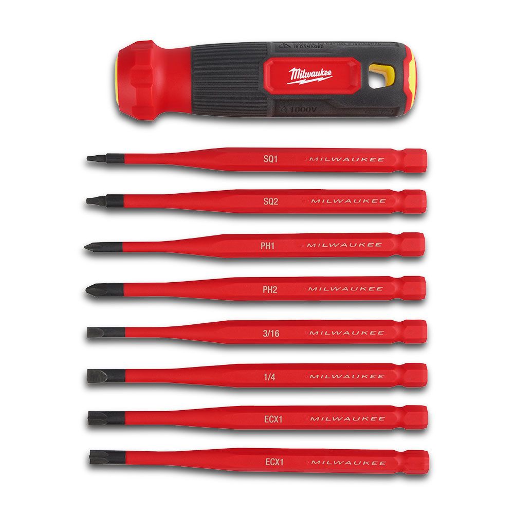 Pour les travaux d'électricité en toute sécurité ! Ce tournevis Milwaukee 8-en-1 est isolé pour une protection jusqu'à 1000V. Il combine 8 embouts couramment utilisés (Phillips, plat, Torx, etc.) dans un manche compact et ergonomique. Matériaux thermoplastique et acier, couleur rouge/noir. Référence 48-22-2217. Neuf, sous blister. Parfait pour les électriciens, les bricoleurs qui touchent au tableau électrique, ou la réparation d'appareils électroniques. Plus besoin de chercher l'embout, tout est dans la main ! Un outil professionnel, fiable et qui peut éviter de gros ennuis.