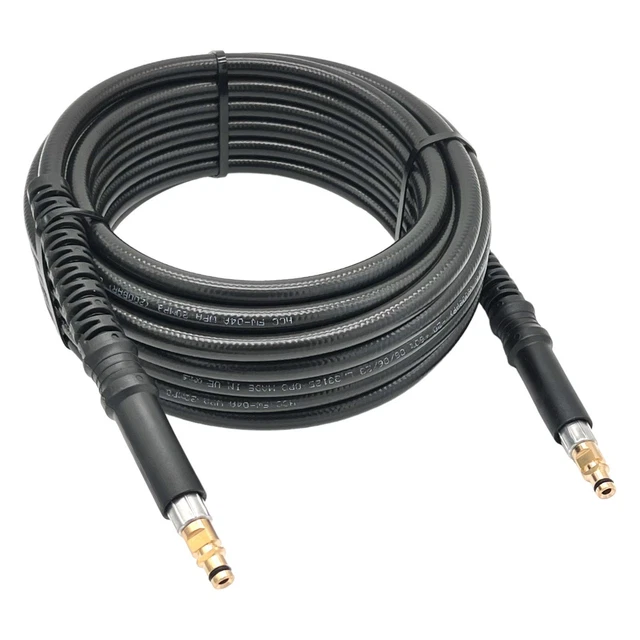 Ce tuyau haute pression de remplacement est compatible avec les nettoyeurs Kärcher K2, K3, K4, K5, K6 et K7 (modèles à partir de 2009 avec raccord Quick-Click). Il est disponible en différentes longueurs (de 3 à 16 mètres, à choisir selon vos besoins), vous offrant plus de portée pour nettoyer votre terrasse, voiture, façade... Il supporte une pression maxi de 300 bars et une température jusqu'à 60°C. Flexible, robuste et de couleur noire, il est neuf et livré à l'unité. Marque générique, mais parfaitement adaptée. Si votre tuyau d'origine est usé ou percé, ce remplacement économique vous redonnera toute la puissance de votre Kärcher. Montage simple sur le système Quick-Click. Un must pour l'entretien de votre maison et jardin !