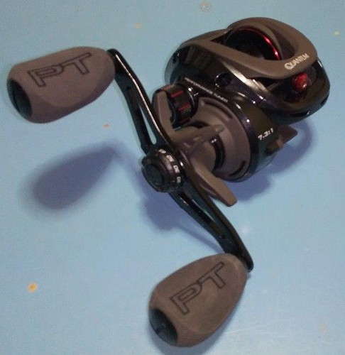 Les pêcheurs au leurre qui cherchent du matériel performant, ce moulinet baitcast Quantum PT KVD SMOKE S3 est une belle machine ! Modèle SKVD101SPT, conçu en collaboration avec le pro Kevin VanDam. Caractéristiques techniques : rapport de réduction 6.1:1 (donc plutôt rapide), récupération de 27 pouces par tour de manivelle. Il est bourré de 8 roulements à billes + 1 roulement à rouleaux pour une rotation ultra-fluide. Le frein max est de 25 livres, ce qui est solide pour maîtriser de gros poissons. Capacité de ligne : environ 170 mètres de 12 livres. Poids : 7.8 onces (environ 220g). Et il est pour main GAUCHE (la manivelle se tourne de la main gauche, la canne se tient de la main droite). Neuf, sous boîte d'origine Quantum. Un moulinet sérieux pour la pêche au leurre du black-bass, du brochet, etc. Prêt à affronter les combats !
