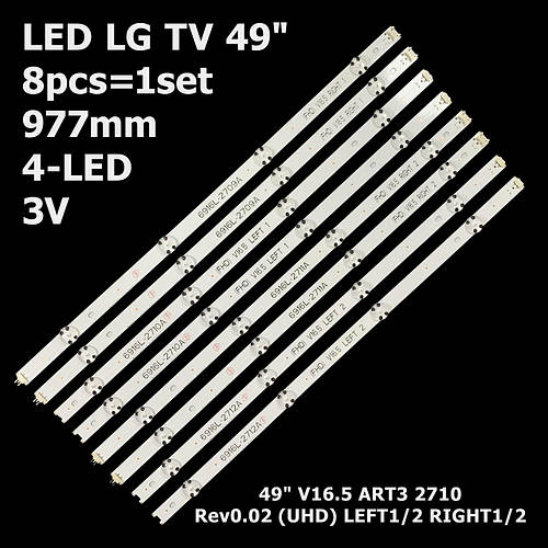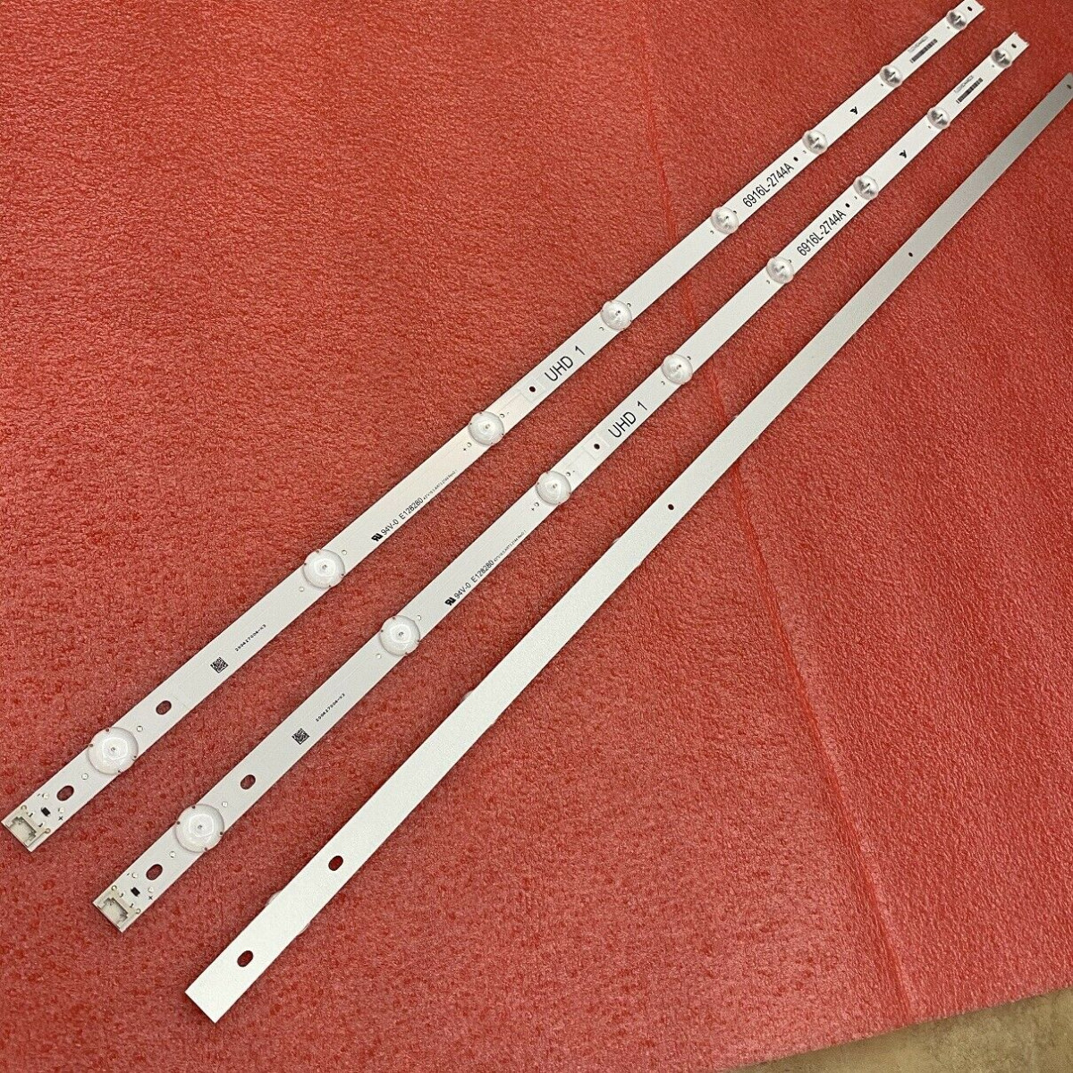 Ce kit de 3 bandes LED (chacune avec 8 barres LED) est conçu pour remplacer les lumières de fond de ton téléviseur LG 43 pouces, modèle 43UH603V (et compatibles). Il est neuf, jamais utilisé, dans son emballage d'origine. Référence : AGF9046801 / 43-V16-ART3-2744 / 6916L-2744A. Chaque bande mesure 842 mm de long. Tension LED : 3V. Le kit inclut du ruban adhésif double face pour faciliter l'installation. Marque générique, mais compatible spécifiquement pour LG. MPN : BARLED-LG-43UHD-V16.5. EAN : 8068087306103. Si ton écran TV présente des zones sombres, un éclairage inégal ou ne s'allume plus, remplacer les barres LED peut souvent résoudre le problème. C'est une réparation économique par rapport à l'achat d'un nouveau téléviseur. Prévoir un peu de dextérité et de patience. Pour la liste exacte des modèles compatibles, voir notre annonce.