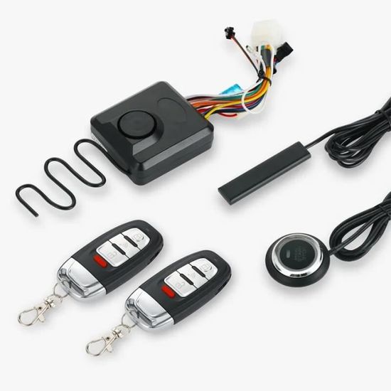 Protège ta moto comme il se doit avec ce kit d'alarme complet ! Il est neuf, prêt à installer. Le gros plus ? Il a une fonction PKE (Passive Keyless Entry) : la moto se déverrouille et s'active automatiquement quand tu approches avec la télécommande, et se réarme quand tu t'éloignes. C'est la \2 voies\ : la télécommande te confirme les actions (bips, LED).