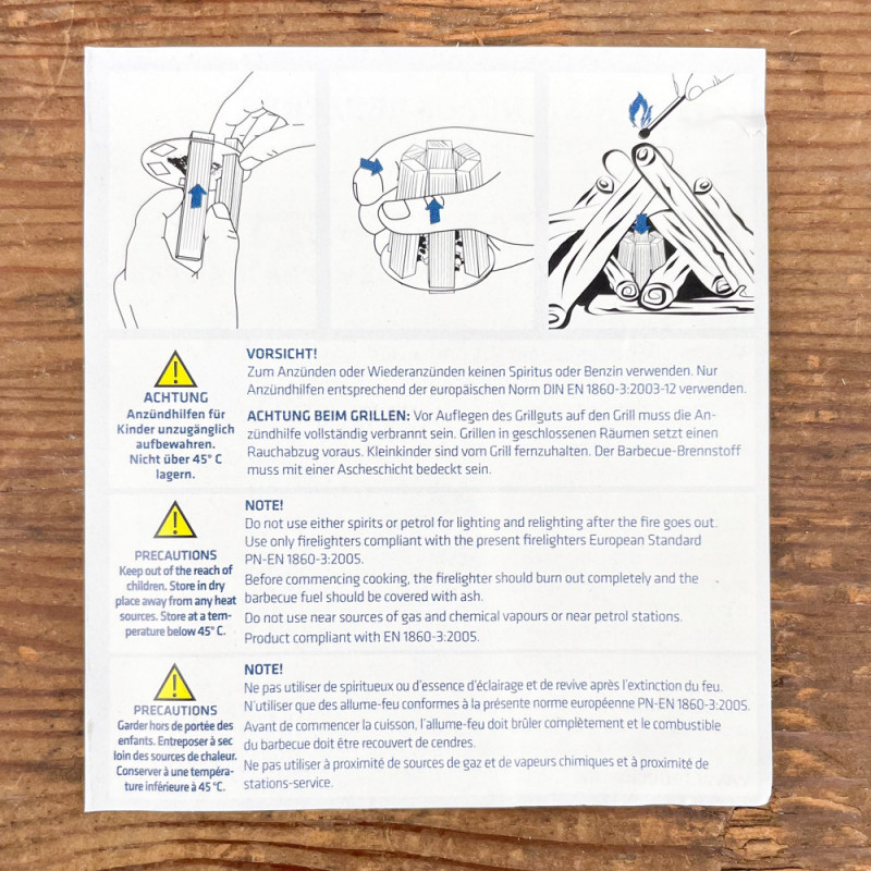 Marque : Bushcraft. Matériaux : bois gras (fatwood), acier, nylon, ferrocerium, etc. Fonctionnalités : étanche, portable, léger, fonctionne même mouillé, sans fumée, sans odeur. Couleur : noir. Fabriqué au Royaume-Uni. EAN : 5060938811234.