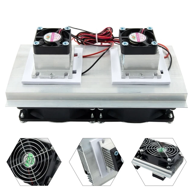 Salut les makers, bidouilleurs en électronique et moddeurs de PC ! Ce kit te permet de construire un système de refroidissement actif basé sur l'**effet Peltier** (thermoélectrique). Il contient des **modules Peltier (TEC)** qui génèrent du froid d'un côté et du chaud de l'autre lorsqu'on les alimente en courant, ainsi que des **ventilateurs** pour dissiper la chaleur du côté chaud. **Neuf**, sous emballage, marque générique. Parfait pour des projets expérimentaux : mini frigo DIY, refroidissement de composants électroniques très chauds, système de déshumidification, etc. Nécessite une alimentation DC adaptée (non incluse) et des connaissances en électronique/thermique. Livraison rapide. Laisse libre cours à ta créativité technique !