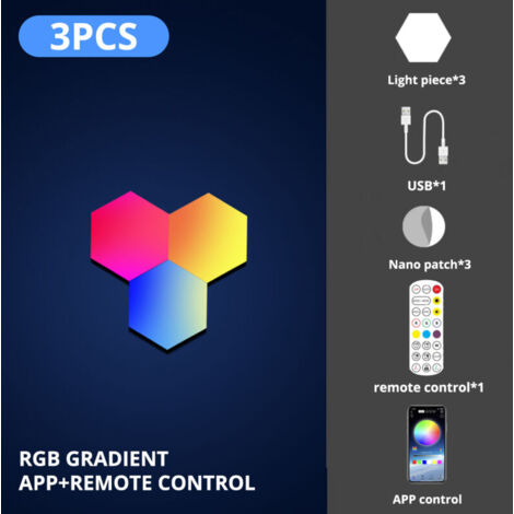 Décorez votre mur avec style grâce à cette lampe LED en forme d'hexagone ! Elle se contrôle en Bluetooth via une application mobile ou une télécommande, et offre un spectacle de couleurs RVB personnalisable (13 LEDs). Choisissez parmi 8 modes d'éclairage dynamiques (rideau, eau, flux...). Elle possède même un mode microphone pour réagir à la musique ! Alimentation par USB (5V), puissance max 10W. Matière : ABS et PC. Économe en énergie (classe A+++), durée de vie > 50 000 heures. Parfaite pour créer une ambiance dans une chambre, un salon, derrière un écran d'ordinateur ou pour une soirée. Facile à installer. Produit neuf, sous emballage, avec certificat CE. Plongez dans la lumière !
