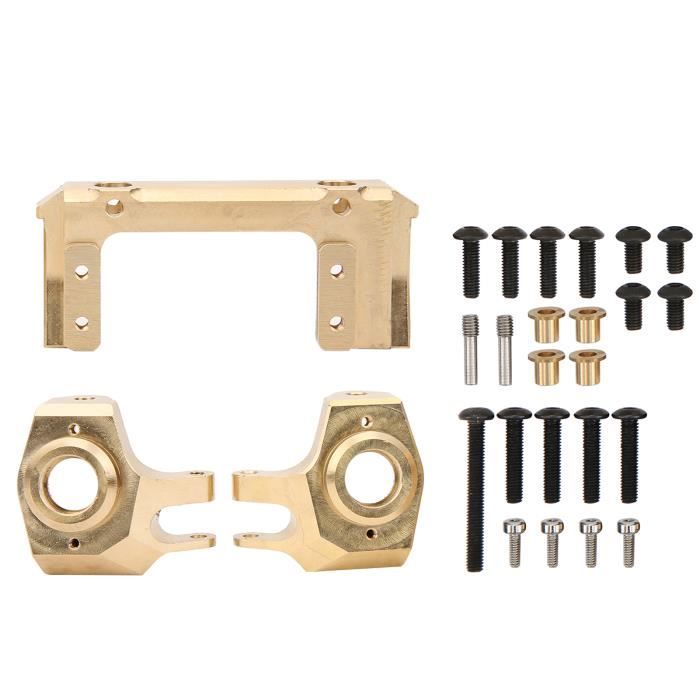 Pour les passionnés de RC crawler (véhicules tout-terrain radiocommandés) qui veulent renforcer et embellir leur Axial SCX10 II (modèles 90046, 90047), voici un support de servo pour pare-choc avant en laiton massif. Cette pièce remplace l'originale en plastique pour une rigidité et une durabilité bien supérieures, essentielle lors des chocs contre les rochers. Poids : 86.5g, ce qui ajoute aussi un peu de poids bas pour une meilleure stabilité. Couleur dorée. Marque non spécifiée, mais qualité correcte. Compatible avec les crawlers électriques 1:10. Une seule pièce. Neuf sous emballage. Un upgrade très courant et apprécié dans la communauté du crawler pour son look pro et ses performances accrues. À monter soi-même avec les outils de base.